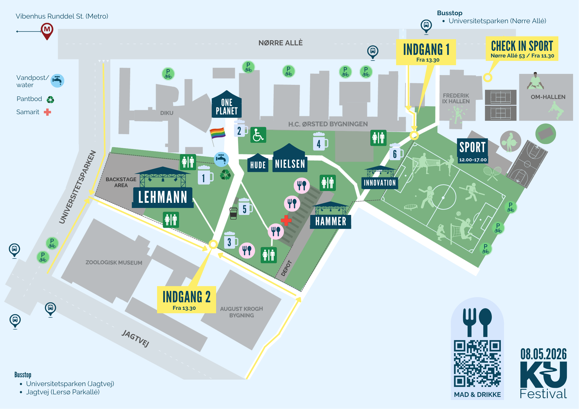 Changing rooms are available from 11:30 – 17:00 at OM-Hallen, Nørre Allé 53, for a quick change before joining KU Festival.